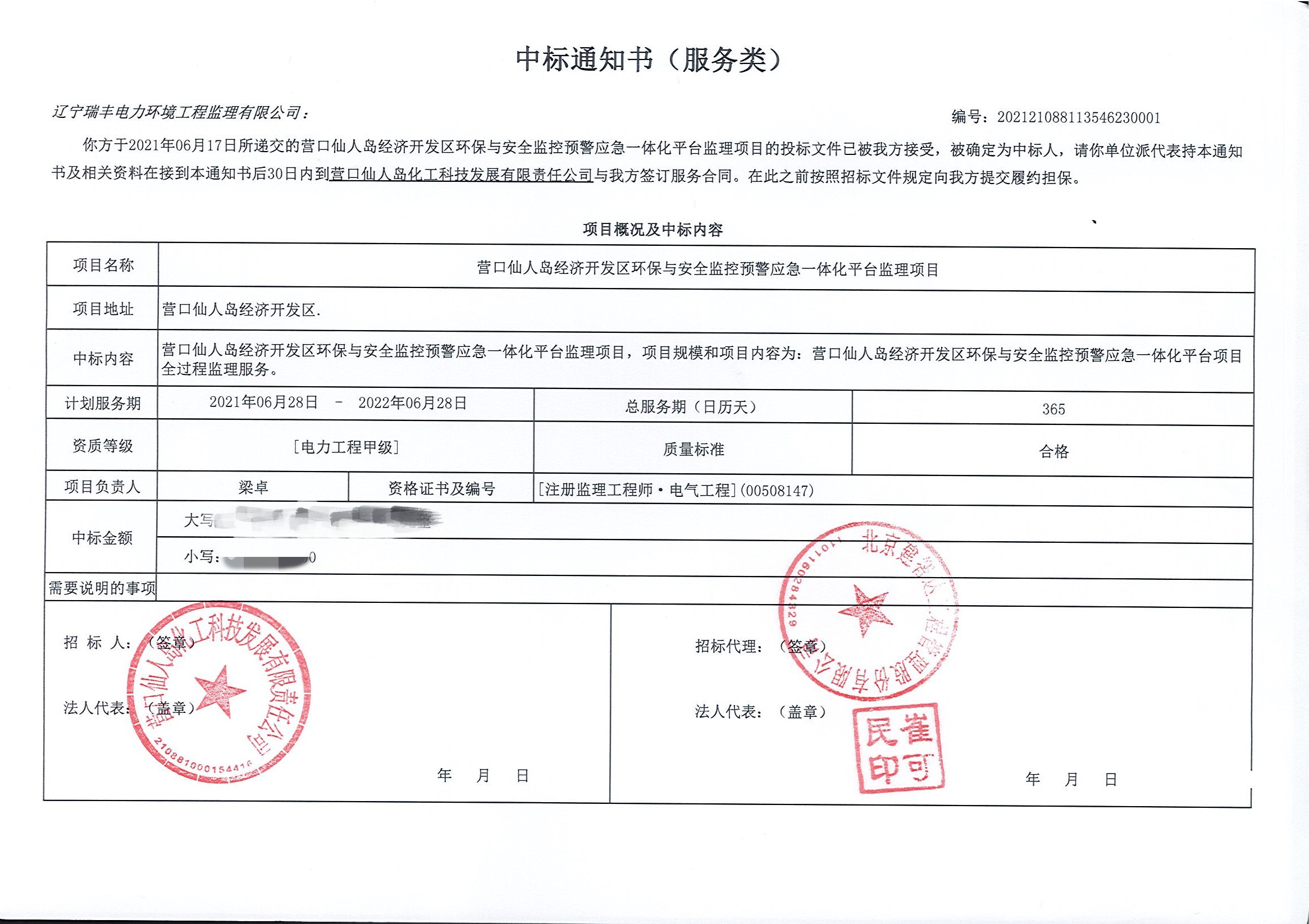 中標喜訊-營口仙人島經(jīng)濟開發(fā)區(qū)環(huán)保與安全監(jiān)控預警應急一體化平臺監(jiān)理項目
