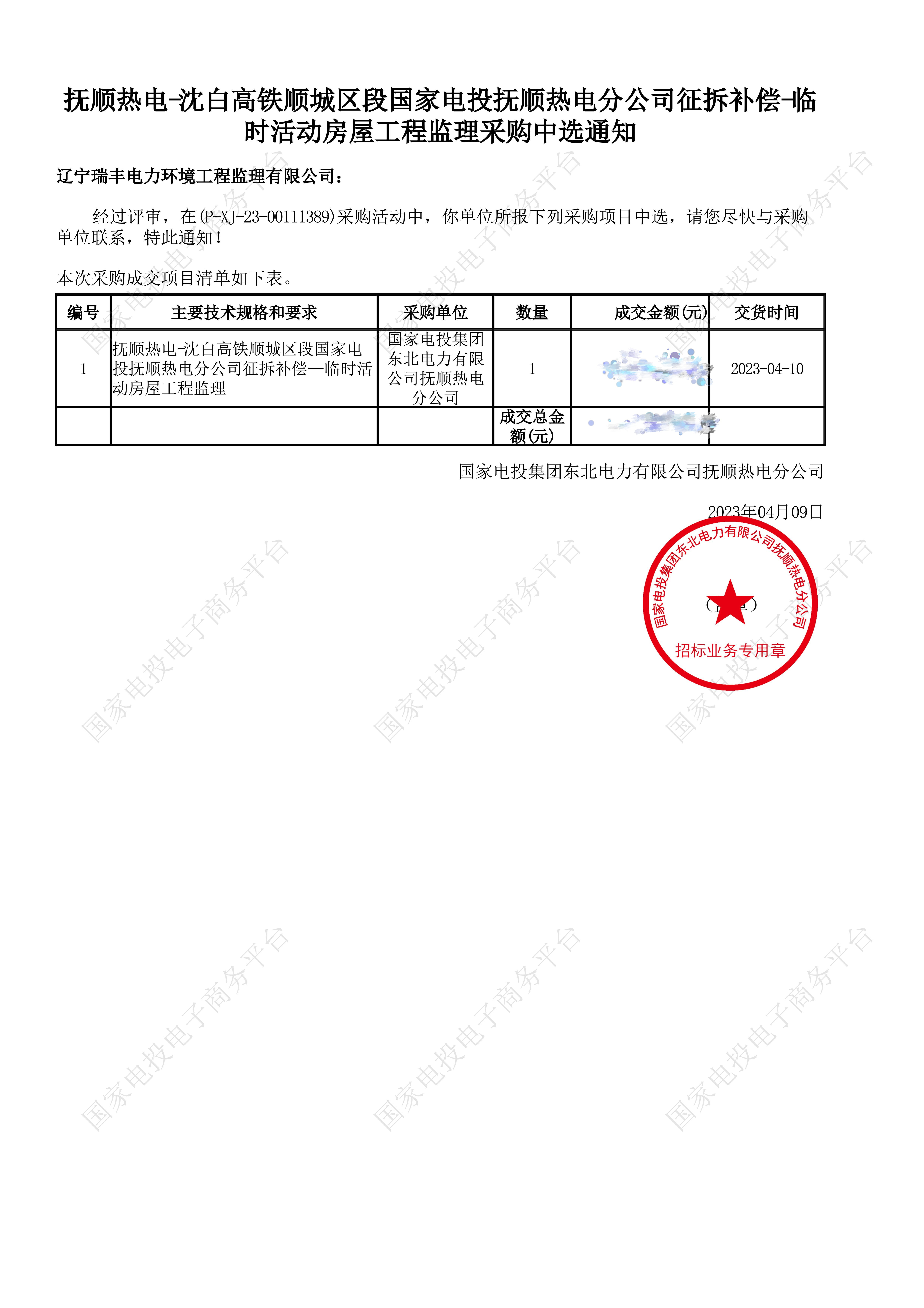 中標喜訊-撫順熱電-沈白高鐵順城區(qū)段國家電投撫順熱電分公司征拆補償-臨時活動房屋工程監(jiān)理