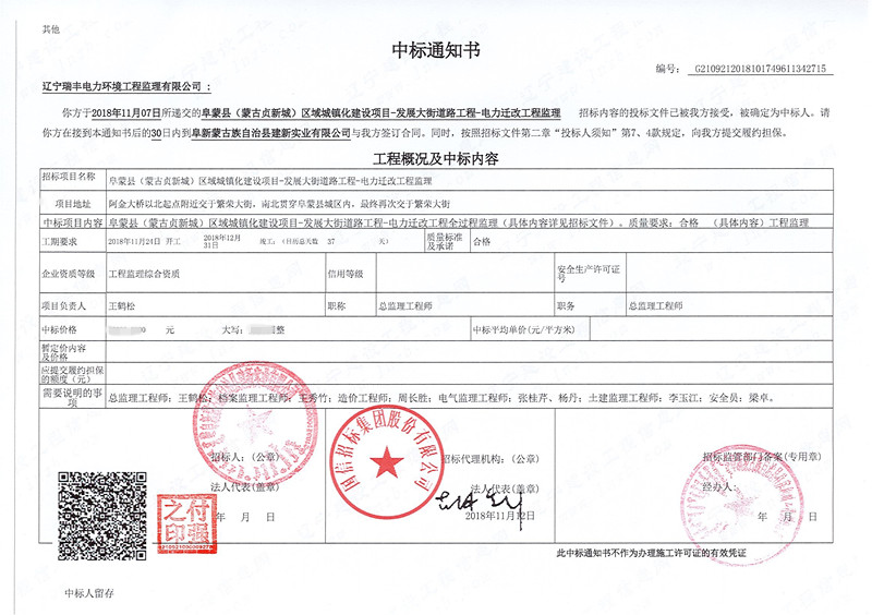 中標喜訊-阜蒙縣(蒙古貞新城)區(qū)城鎮(zhèn)化建設項目-發(fā)展大街道路工程-電力遷改工程監(jiān)理