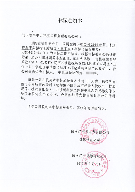 中標(biāo)喜訊-遼河石油勘探局盤錦地區(qū)職工家屬區(qū)“三供一業(yè)”供電設(shè)施改造(監(jiān)理)框架